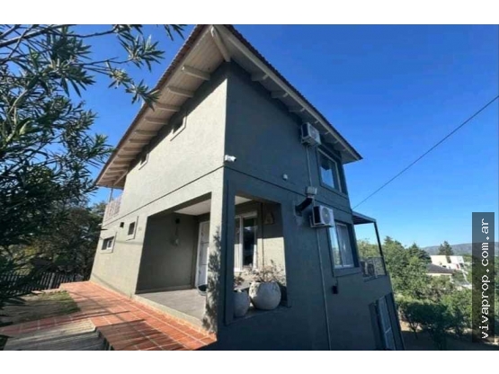 Inmobiliaria VivaProp ofrece magnífica oportunidad por esta propiedad de categoría ubicada en el residencial barrio Villa del Lago, en esta ocasión este inmueble dividido en 2 plantas donde podemos descubrir en planta baja dividido en 3 ambientes compuestos de living, comedor, cocina con isla y baño de cortesía. Con acceso a la terraza con espectacular vista. En planta alta encontramos 2 dormitorios con placard ; baño y el 3er dormitorio principal con baño en suite. La casa además cuenta con lavadero y salón de usos multiples hoy utilizado como oficina. Pileta de 3x7 con bomba y sistema de filtrado. Como dato te contamos que la casa cuenta con todas las instalaciones nuevas (dispone de termotanque solar en función con el termotanque de la casa lo que asegura agua caliente a través de 12mil litros). También te decimos q todas las terminaciones de la casa son con cemento alisado, vidrios Dbh, cortinas blackout, split frío/calor en todos los ambientes y cochera doble.